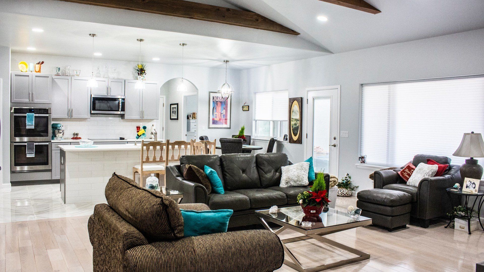 A beautiful new house located in American Village with a unique floor plan and a classic southwestern color scheme.